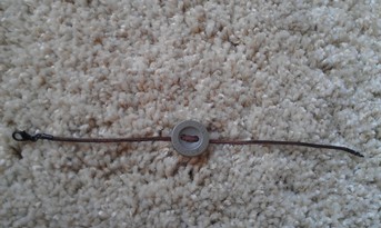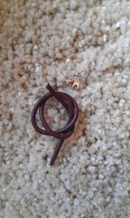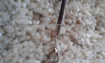Nun nehmt ihr den Anhänger (ihr könnt auch mehrere nehmen), und steckt ihn/sie auf das Lederband. Danach drückt ihr den Verschluss auf der anderen Seite auch noch an.